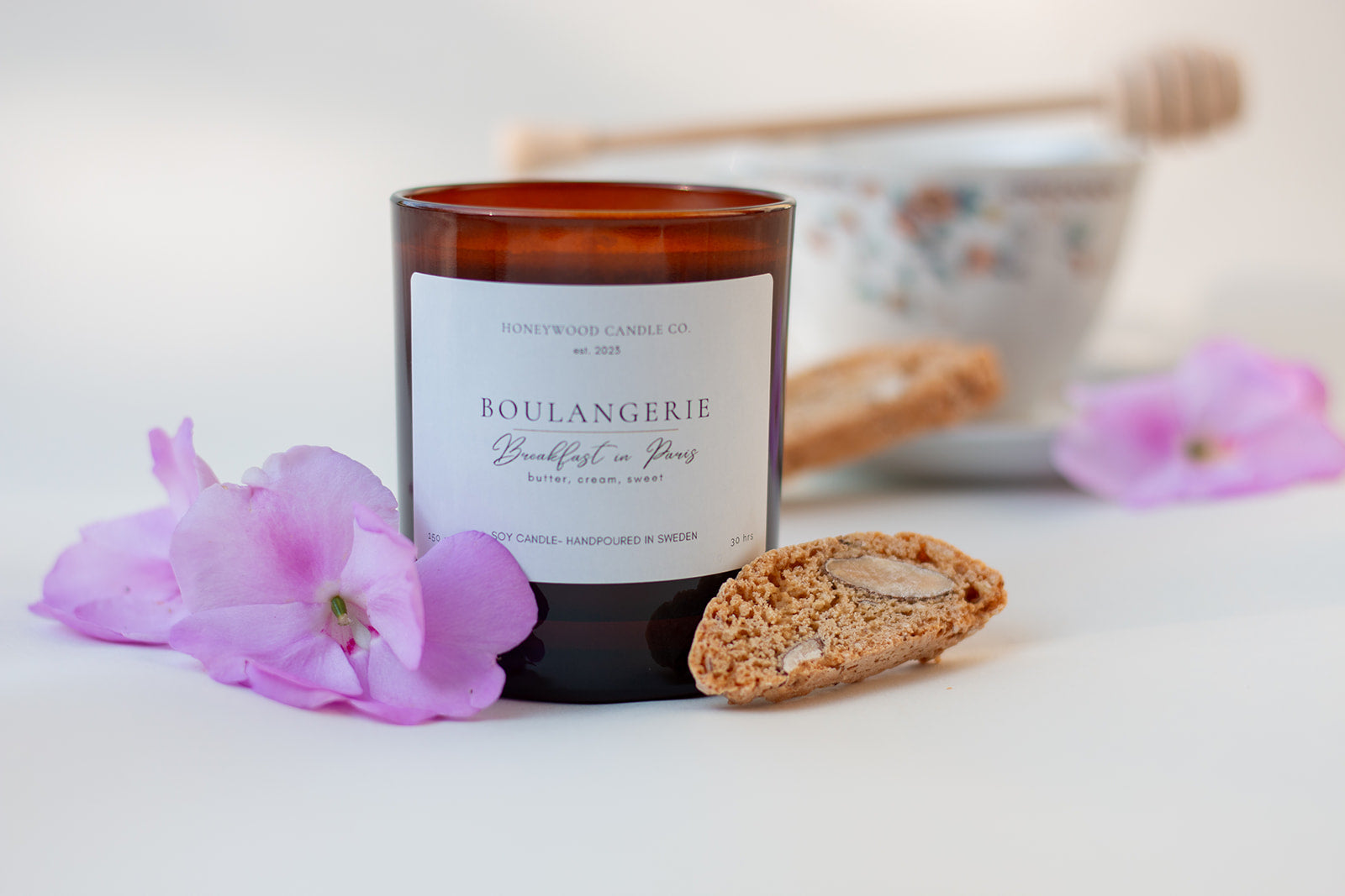 With top notes of butter, heart notes of bread and cream, and base notes of sweet vanilla, Boulangerie offers you an escape to the foodie side of Paris from home. Like that of a local Boulangerie, this candle is buttery croissants greeting you hot and straight from the oven.