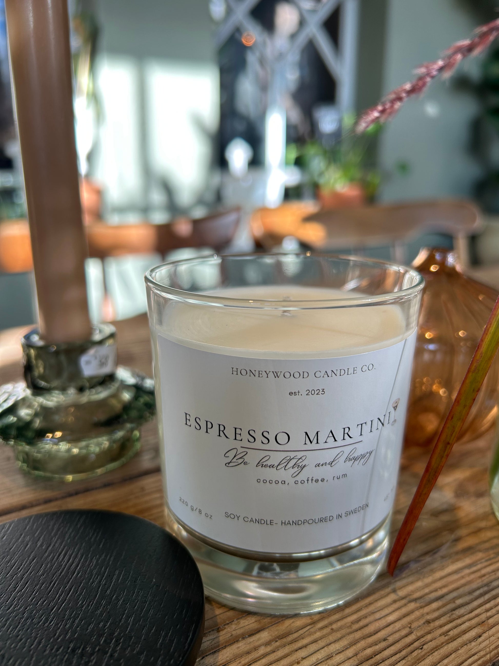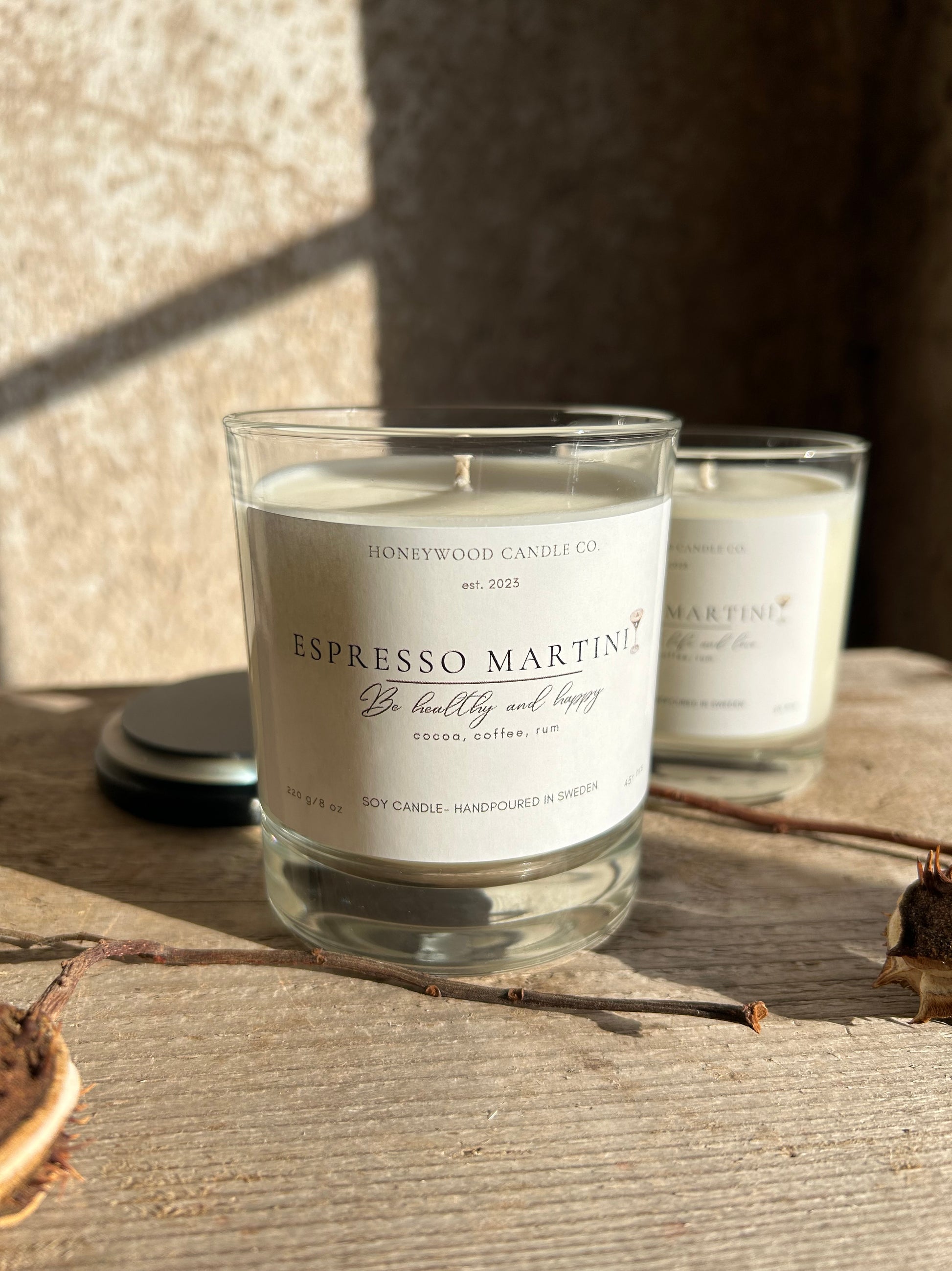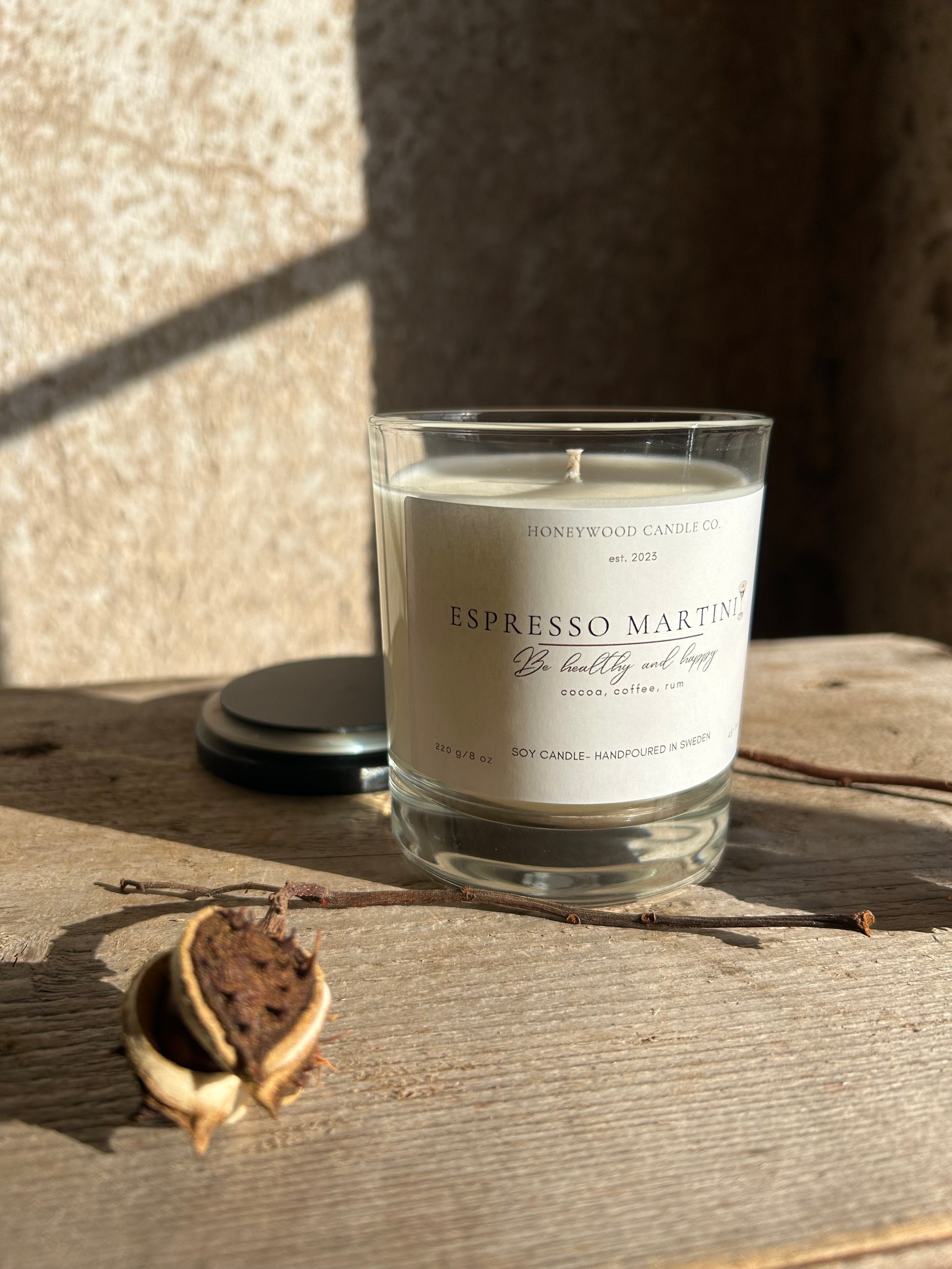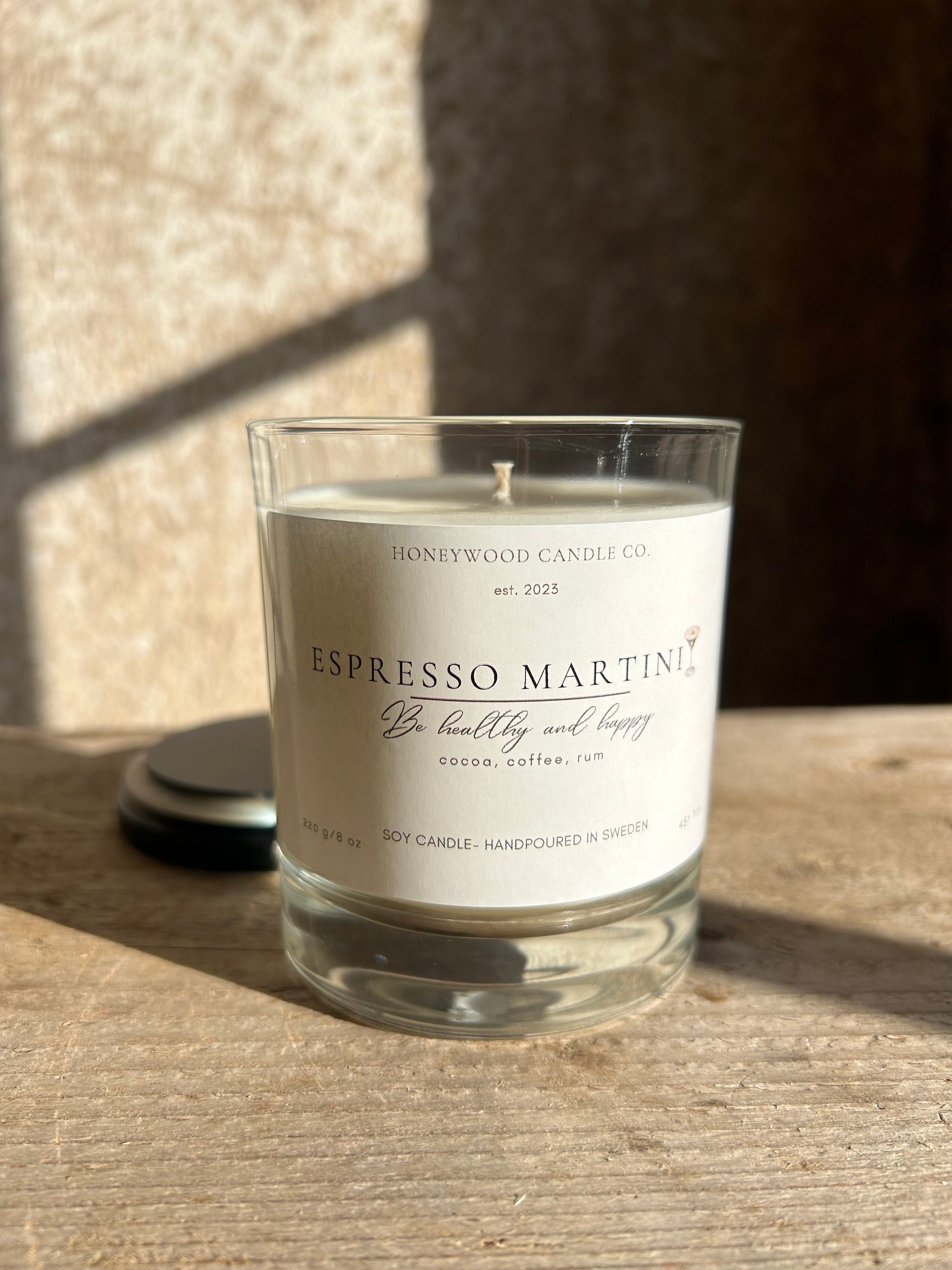 On the label: "Espresso Martini" and "Be healthy and happy"