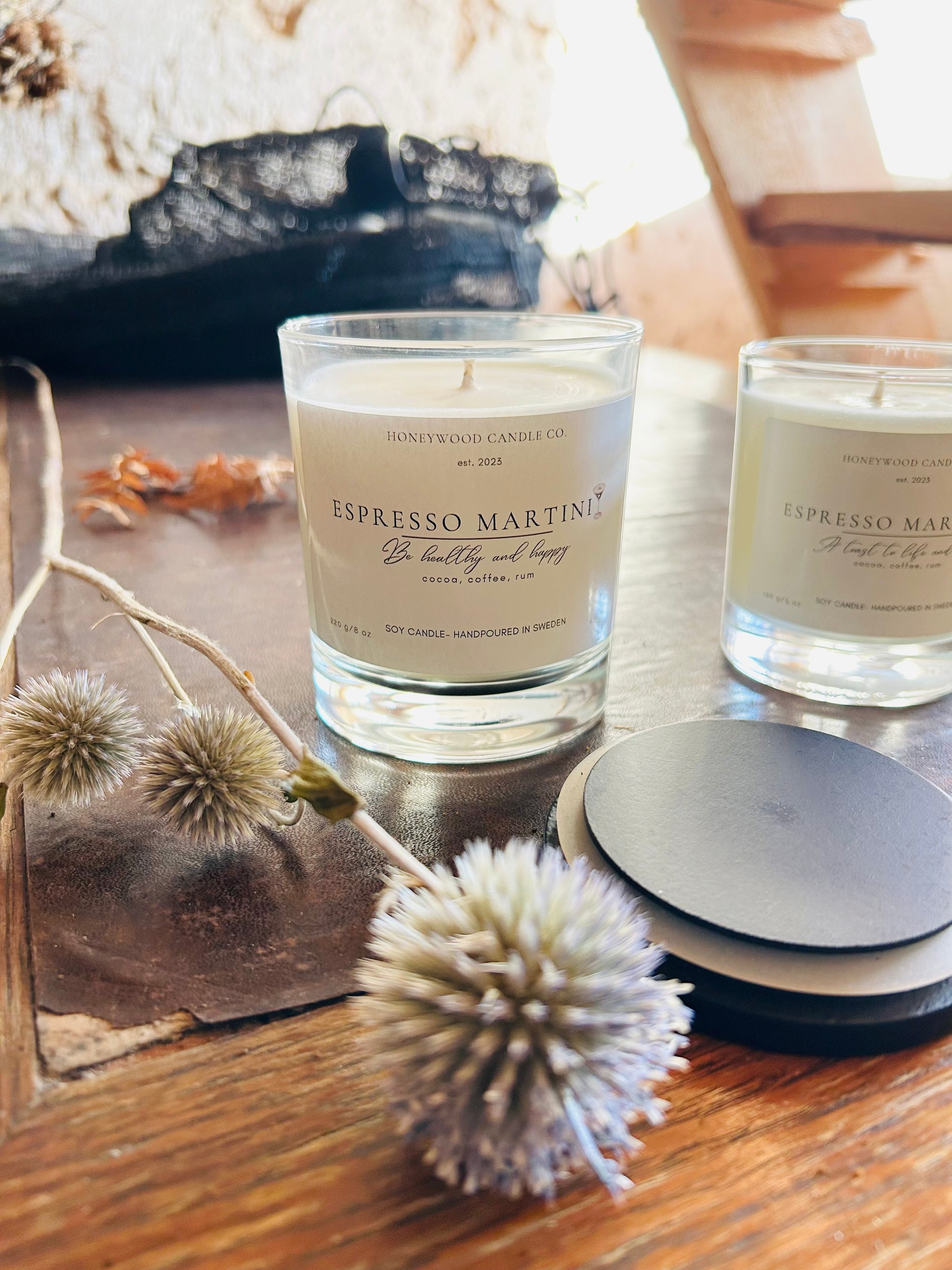With top notes of cocoa, heart notes of coffee, and base notes of rum, Espresso Martini serves up this harmonious blend in our easy to re-purpose clear whisky tumbler.
