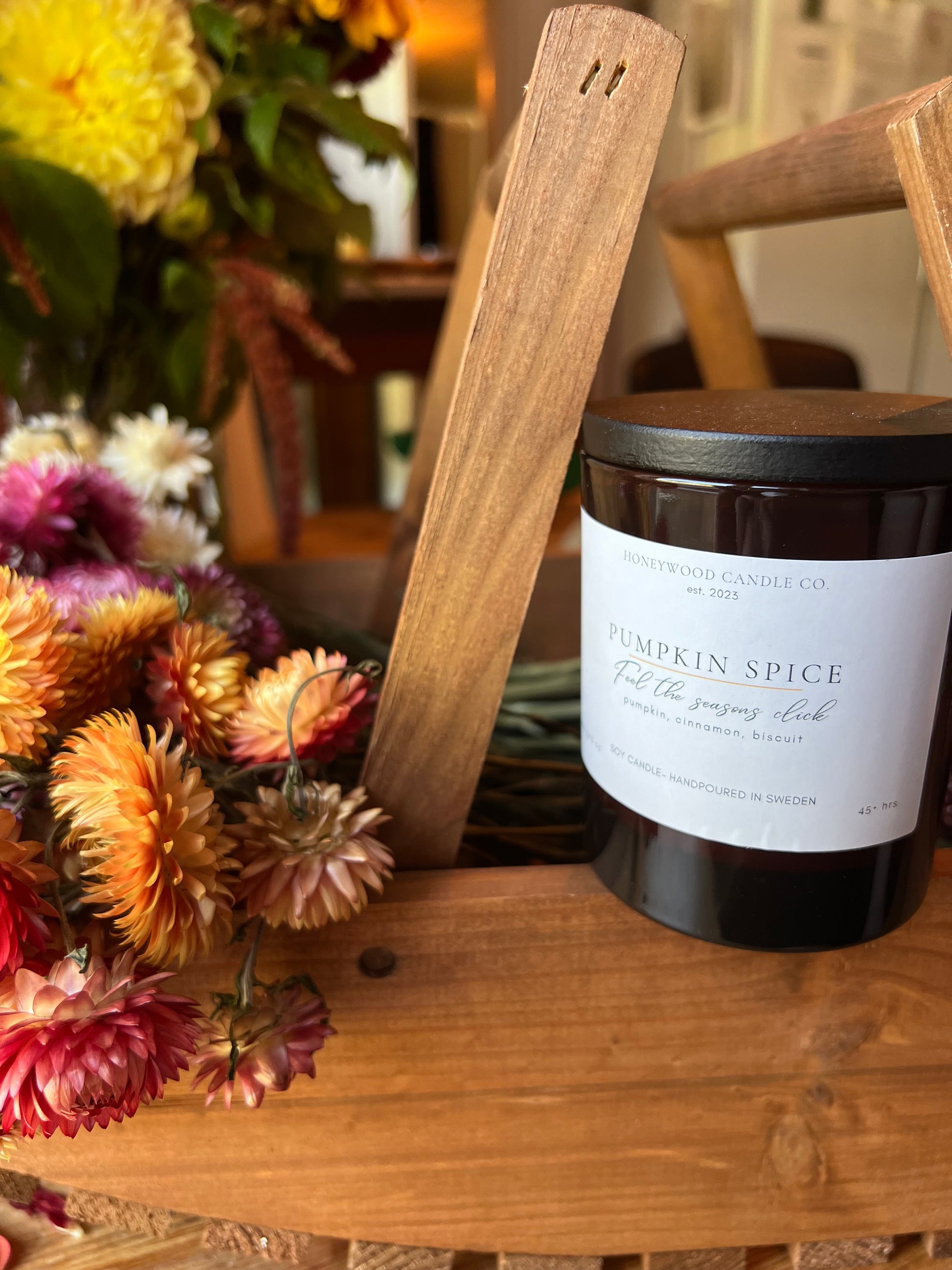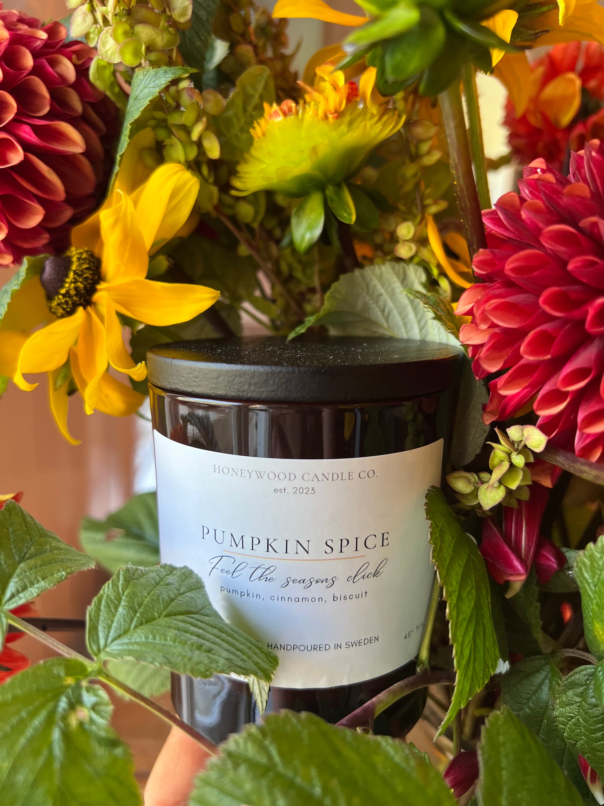 On the label: "Pumpkin Spice" and "Feel the seasons click"