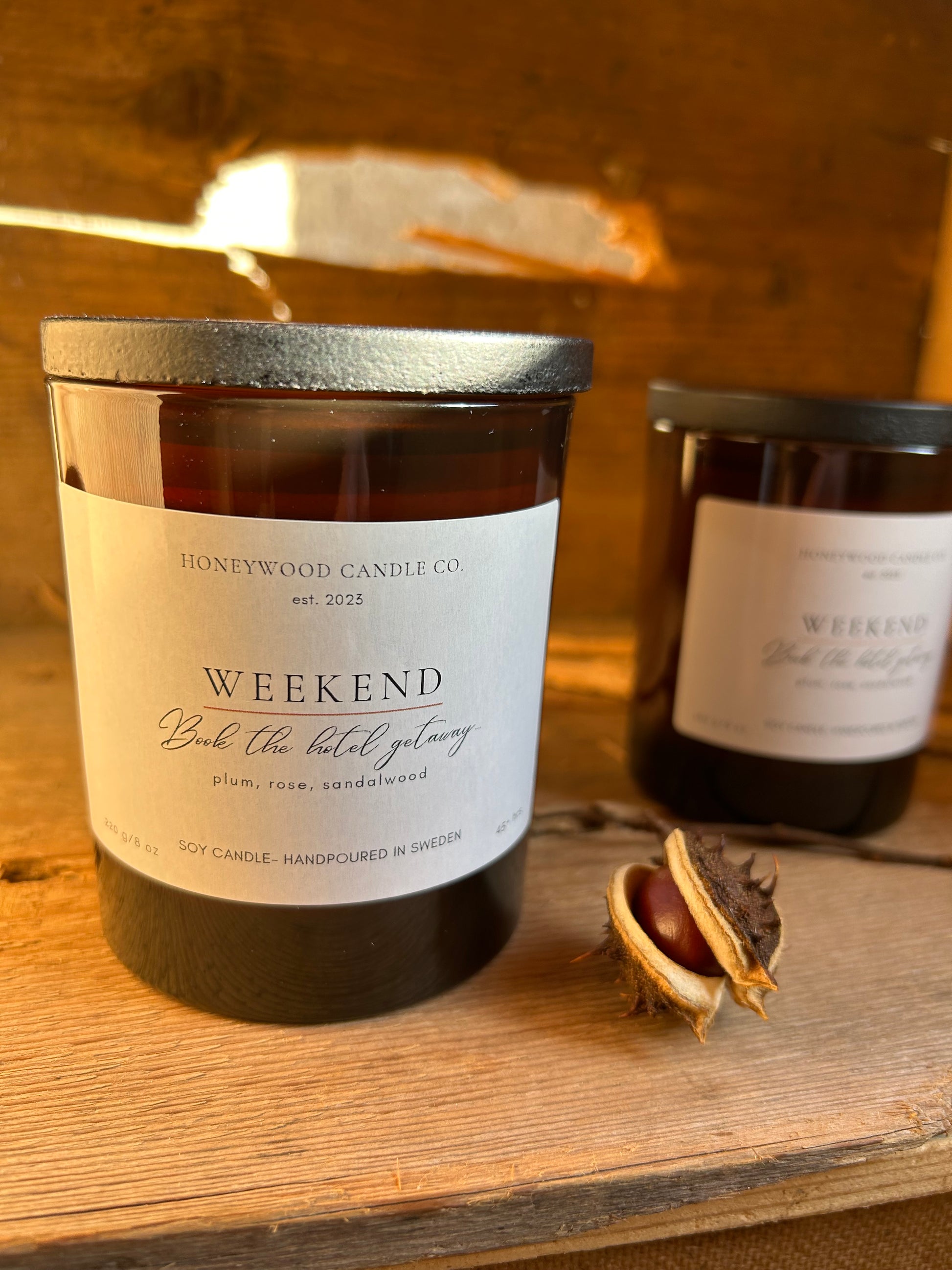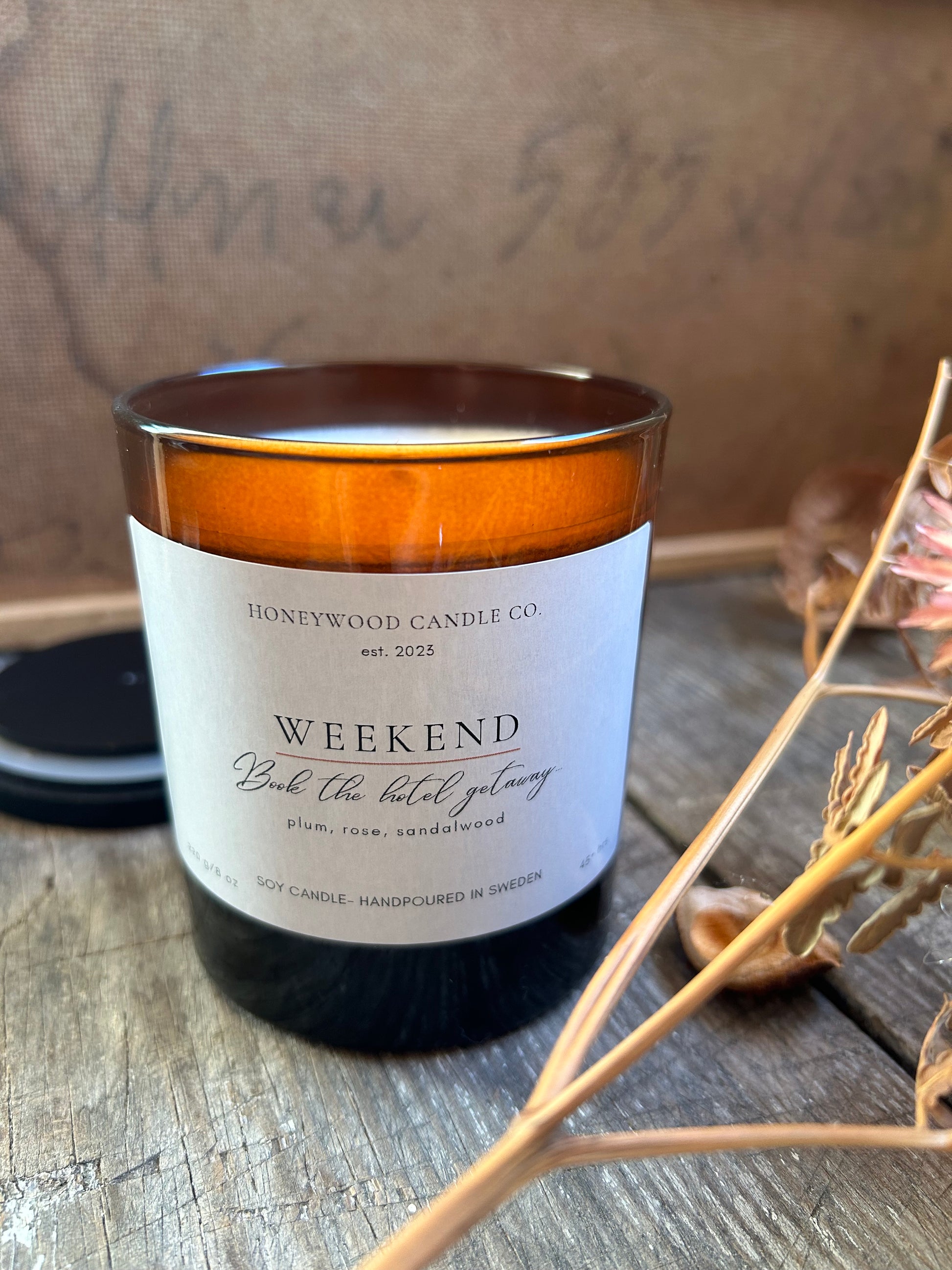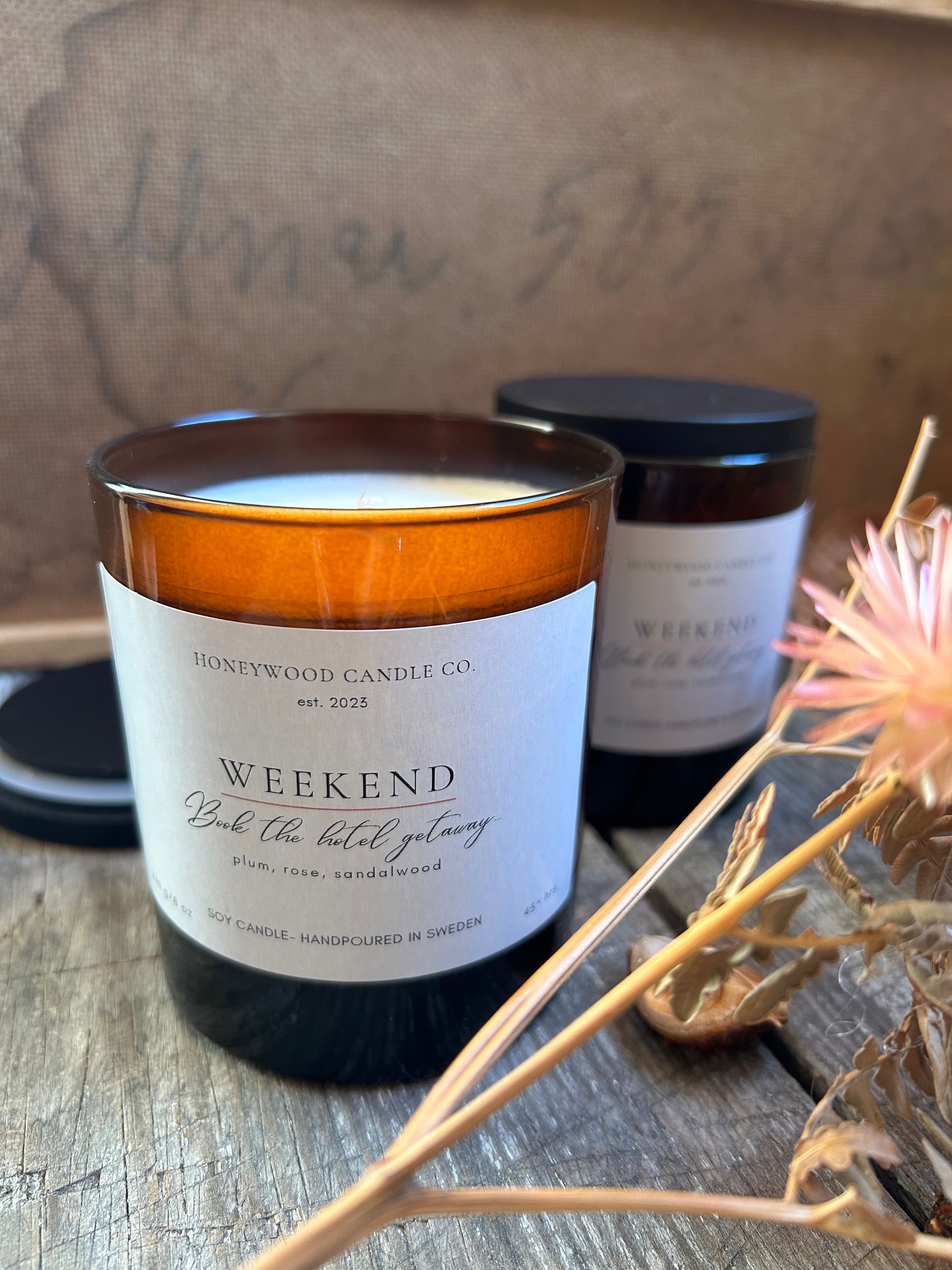 When long vacation ends, we still have weekends to Book the hotel getaway. Honeywood's sophisticated Weekend candle smells like stepping into a 5-star hotel.